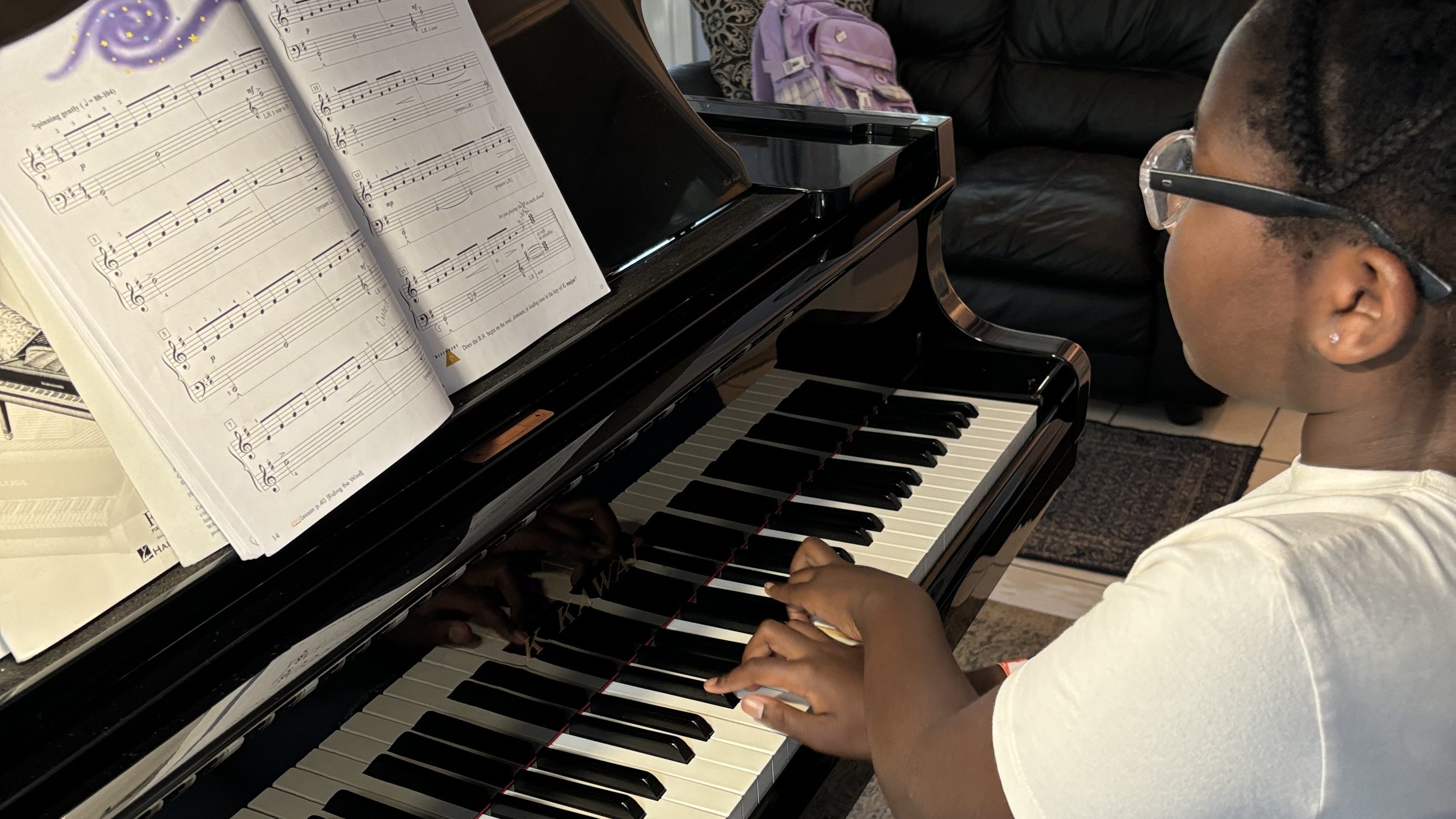 During a half-hour session, Deb determines a student’s interests and skill level to customize their piano learning experience.